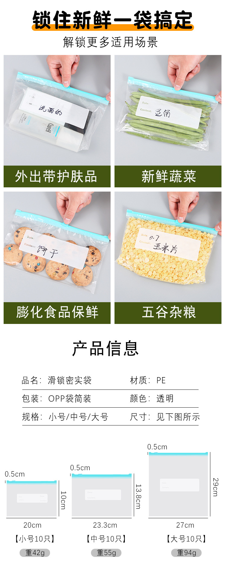拉链密封袋 家用冰箱专用塑封保鲜袋分装自封收纳袋子 滑块密实袋