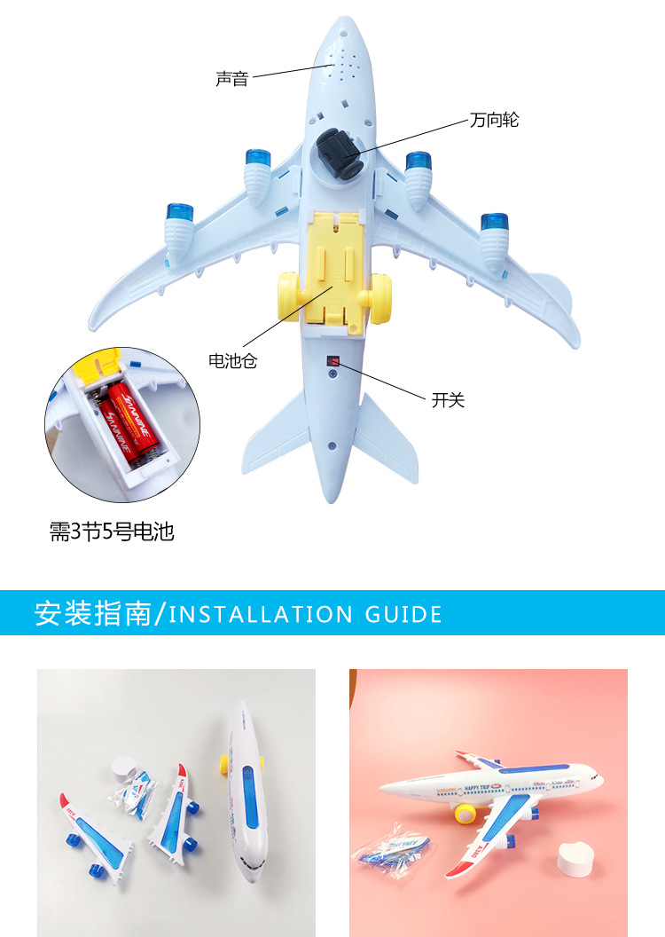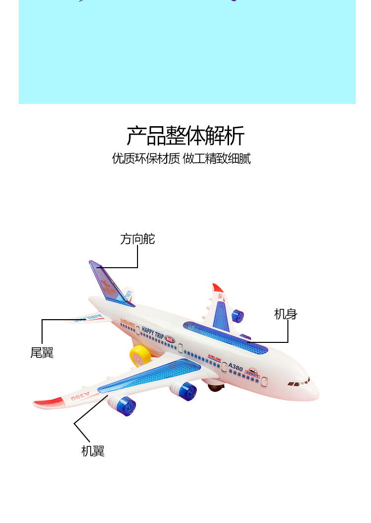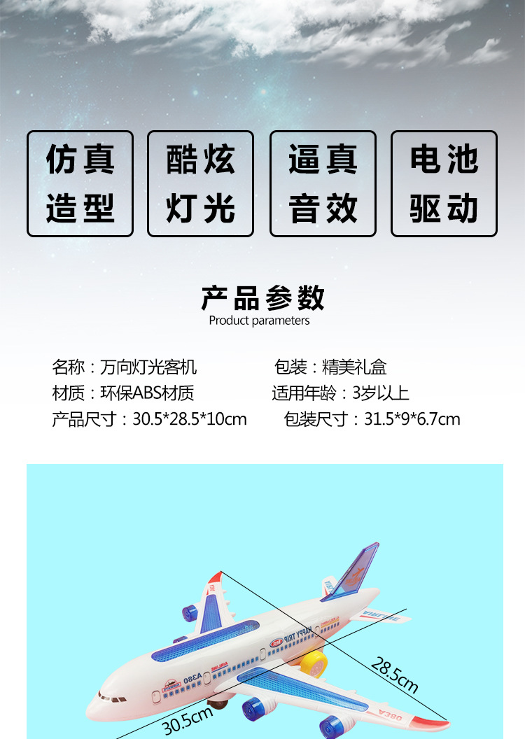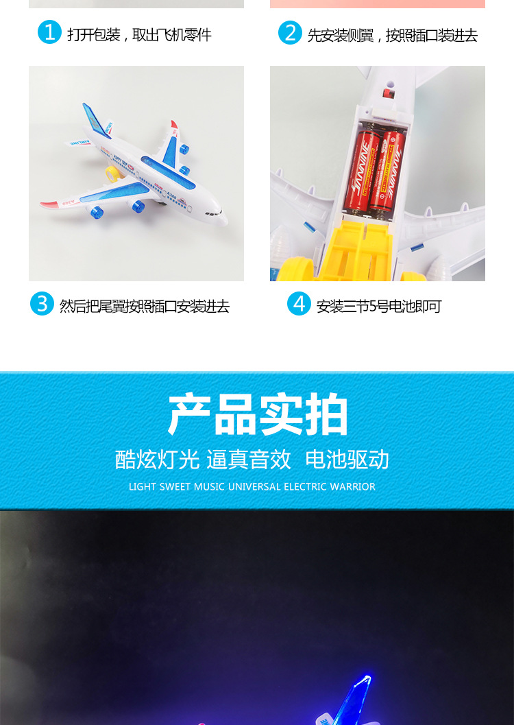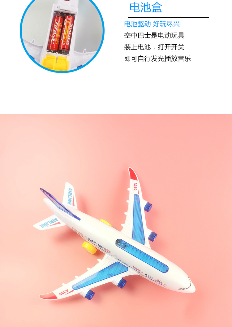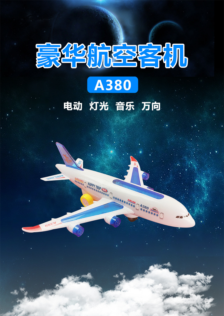 飞机发光电动音乐玩具飞机A380灯光客机模型儿童地推货源地摊批发