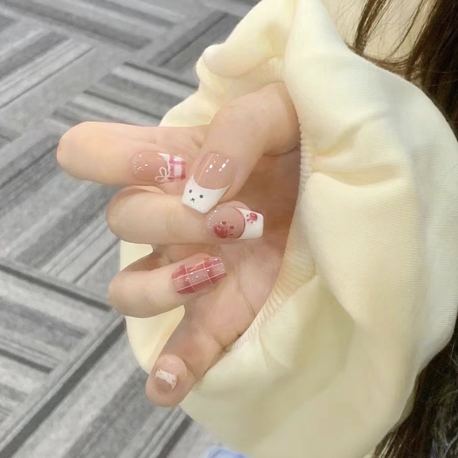 美甲片成品中长穿戴甲片穿戴甲欧美美甲贴24甲片穿戴美甲裸色纯欲