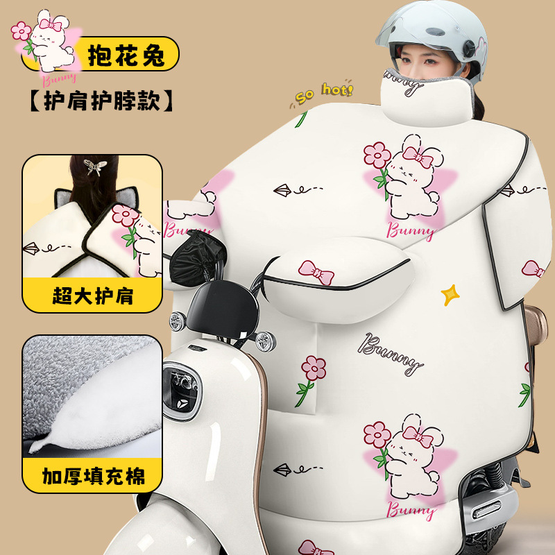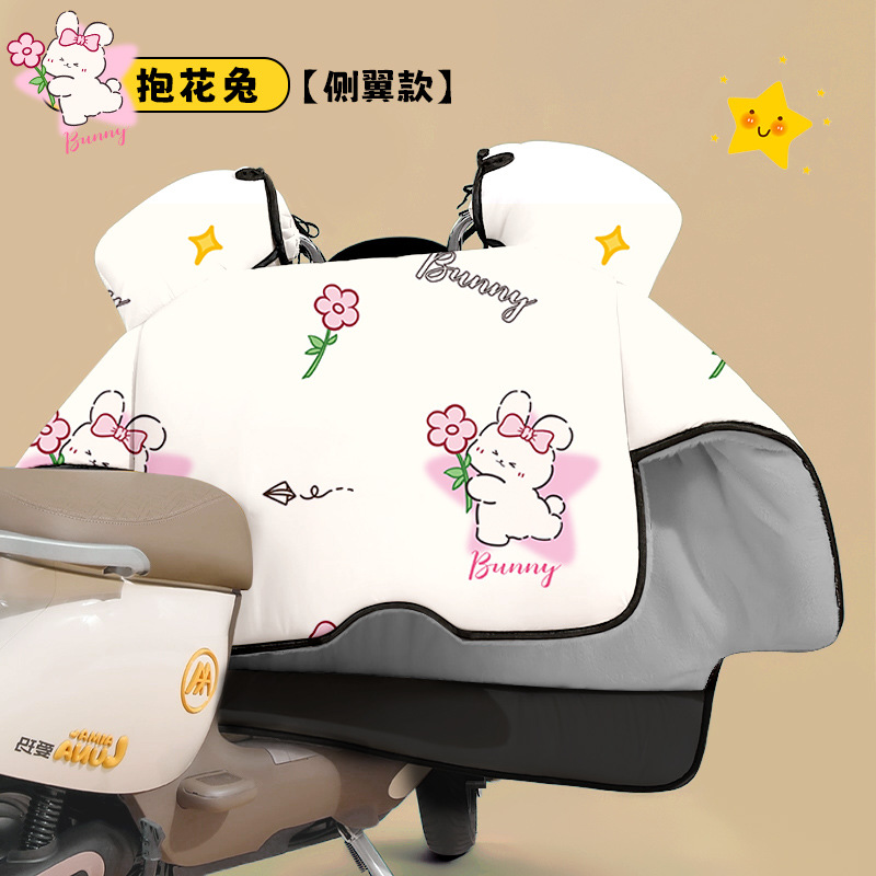 【春秋款全包斗篷+高端镭射珠光膜+防晒隔热+收纳牛角扣】米底抱花小兔