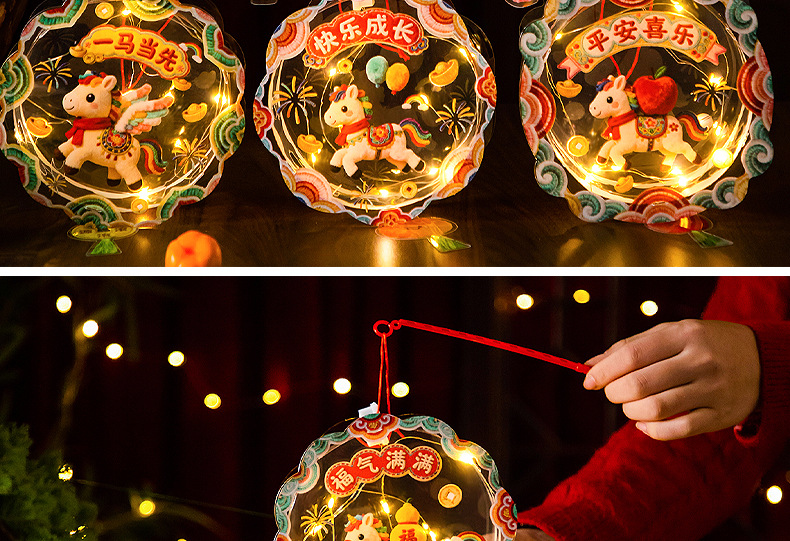 马年新年5D立体毛绒小灯笼手工diy材料包元宵节儿童手提发光花灯