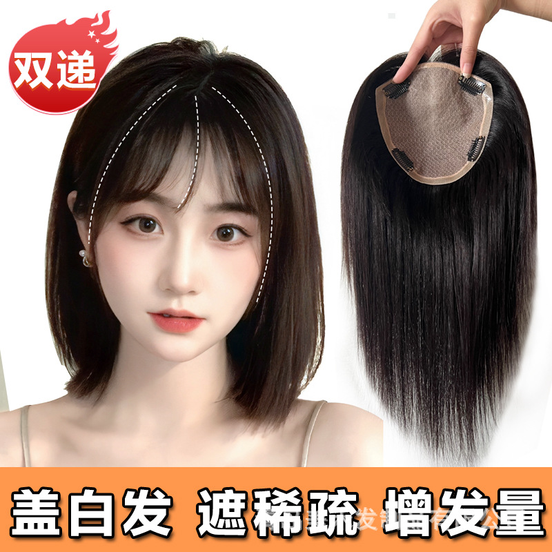 美禾 真发假发女无痕假发片增发量蓬松发片 双递针手织头顶补发片