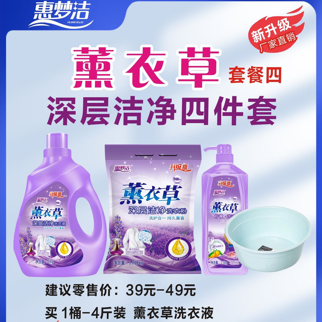 厂家批发洁净薰衣草洗衣液三件套跑江湖地摊赶集洗衣粉日化四件套