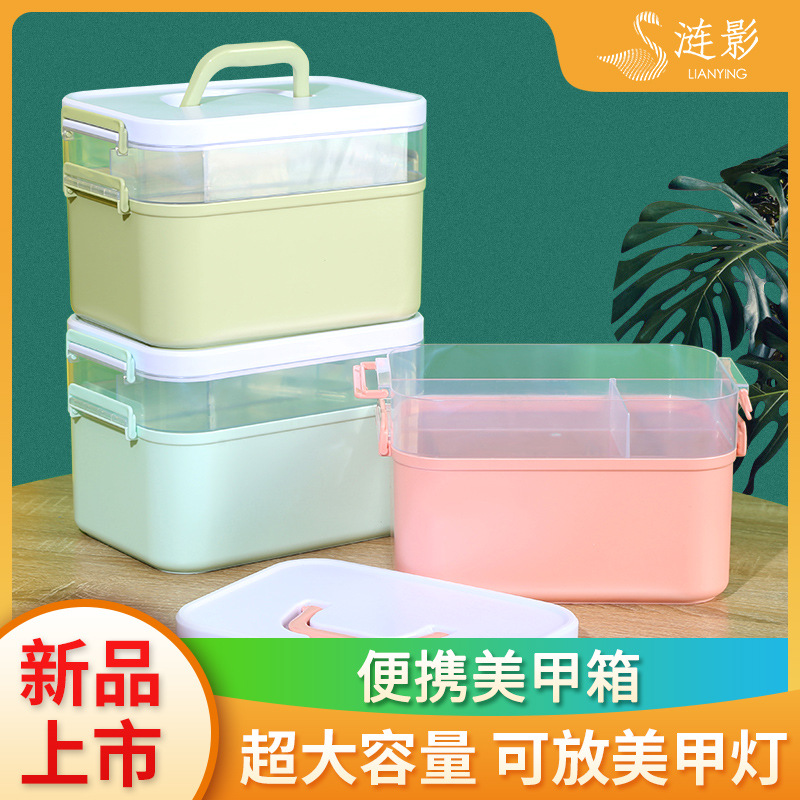 美甲工具箱美甲收纳盒指甲油胶收纳箱双层大号美妆涟影工具盒批发