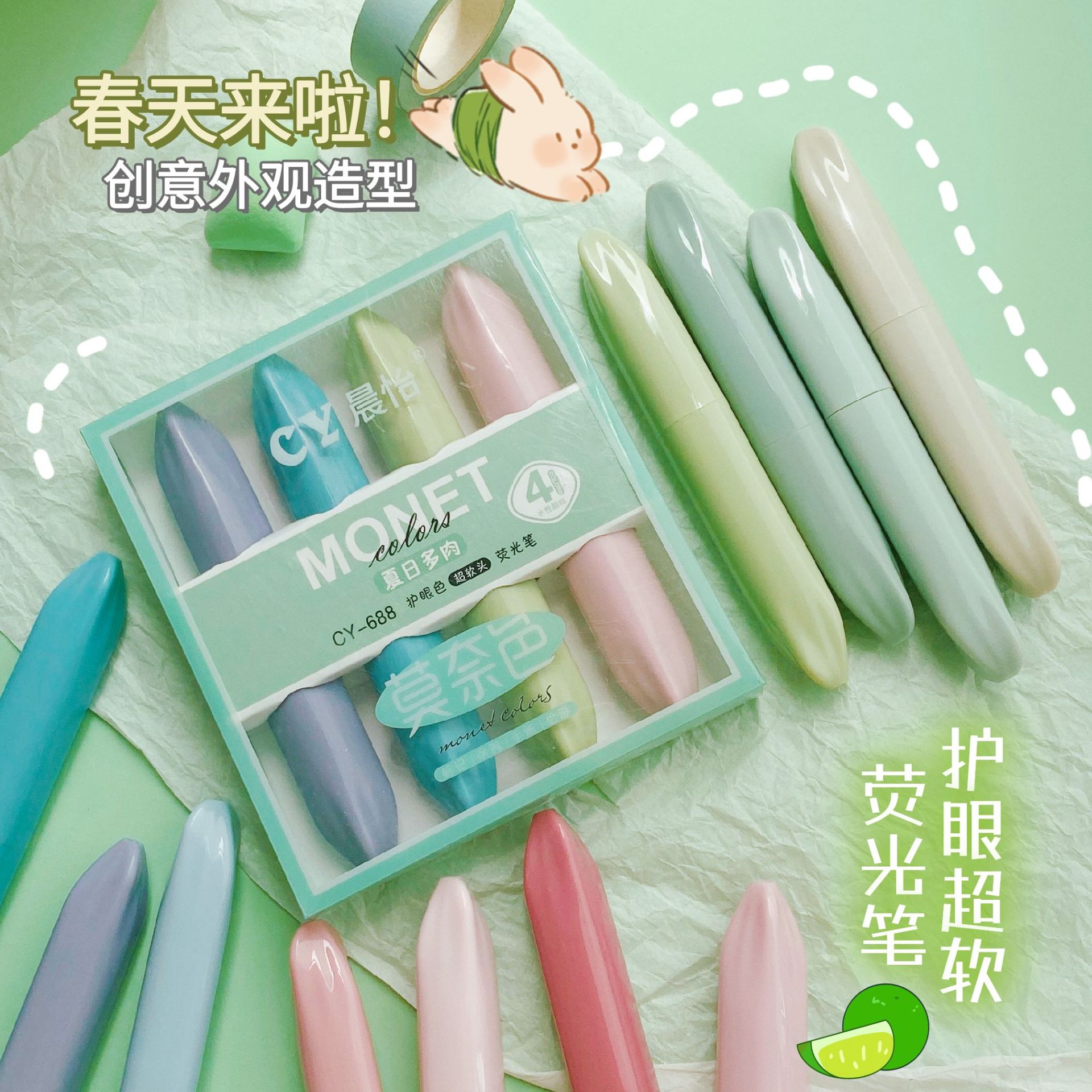 软头荧光笔淡色系荧光标记笔大容量学生记号彩色划重点