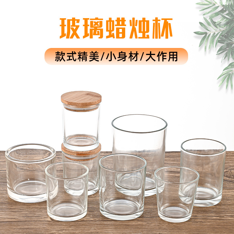 厂家直批现货200ml玻璃蜡烛杯带盖彩色香薰蜡烛罐300ml烛台直边罐