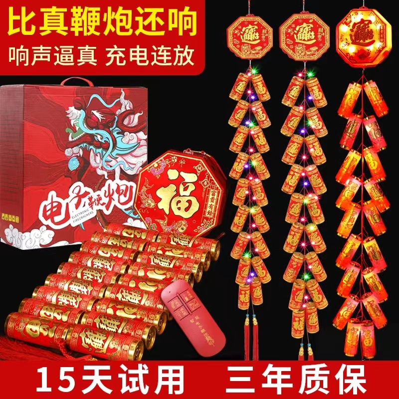 厂家直供仿真电子鞭炮免插电带超响遥控充电春节家用喜庆乔迁炮仗