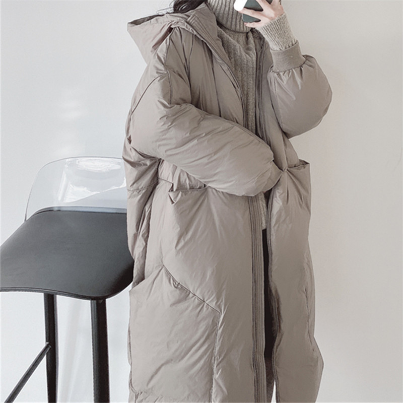 入店B囤!2022年新款90%白鸭绒韩版轻便大口袋女士长款加厚羽绒服
