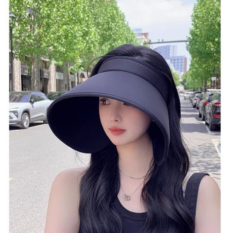 (18DS)帽子女夏季出游防紫外线空顶遮阳帽,新款环绕式加大帽檐防晒帽,6个颜色,黑色少,7300个,适合直播赠品礼品引