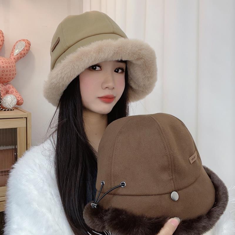 毛绒渔夫帽子女冬季户外东北帽加绒加厚百搭保暖护耳日系优雅盆帽