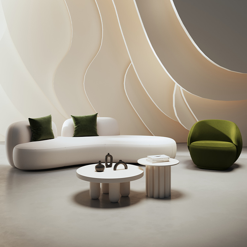 羊羔绒弧形沙发美容院接待休息区服装店洽谈设计师款网红布艺沙发