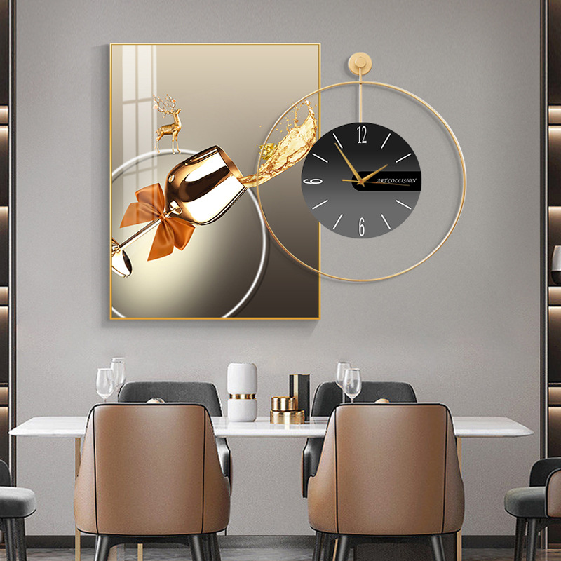 现代轻奢餐厅装饰画时钟饭厅背景墙挂画简约创意大气客厅壁画钟表