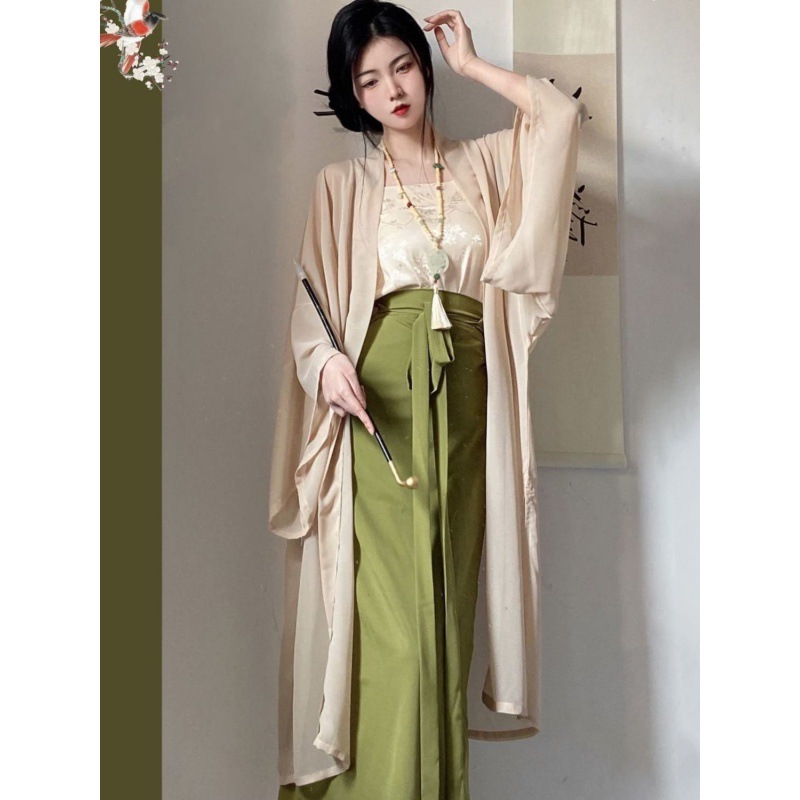 汉服女成人古风唐制齐胸襦裙国风全套闺蜜款一片式印花裙春夏款
