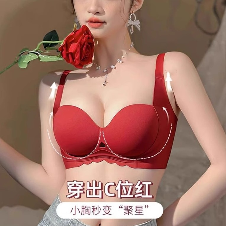 新款提拉轻暖内衣女士一体式固定杯无痕聚拢无钢圈裸感舒适文胸