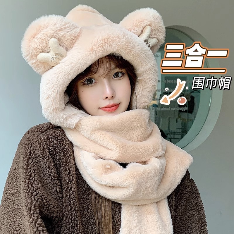帽子女款冬季新款防风防寒面罩骑车保暖小熊帽围脖口罩一体骑行帽