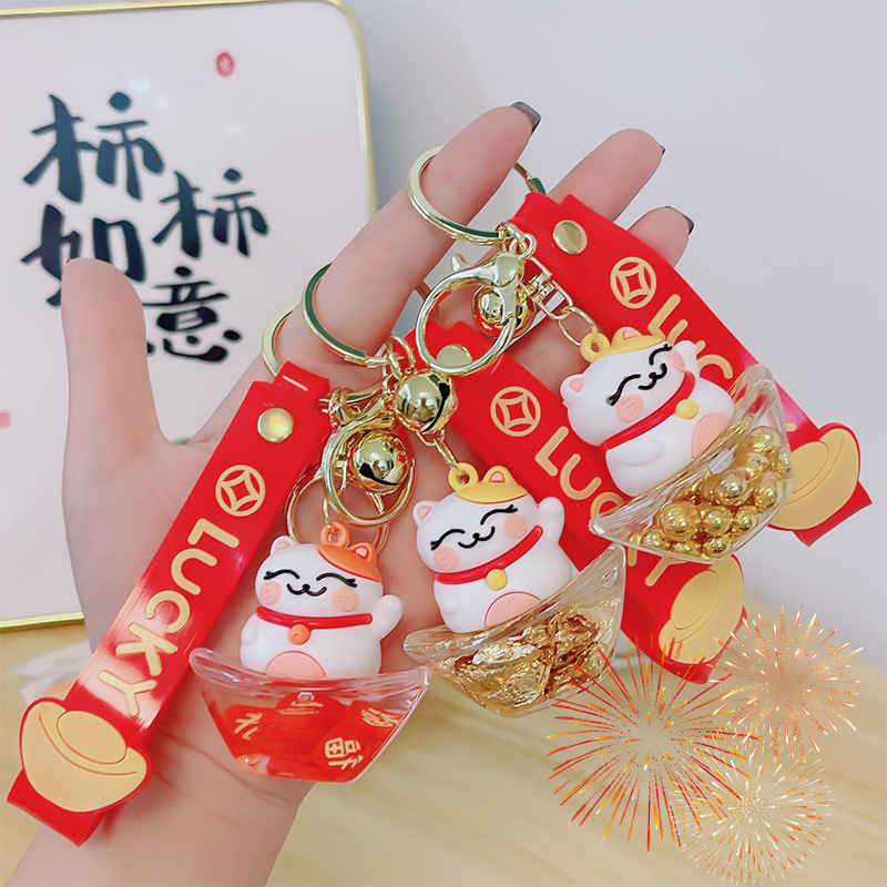 可爱二代暴富招财猫流苏立体公仔汽车钥匙扣挂件夜市摆摊礼物批发