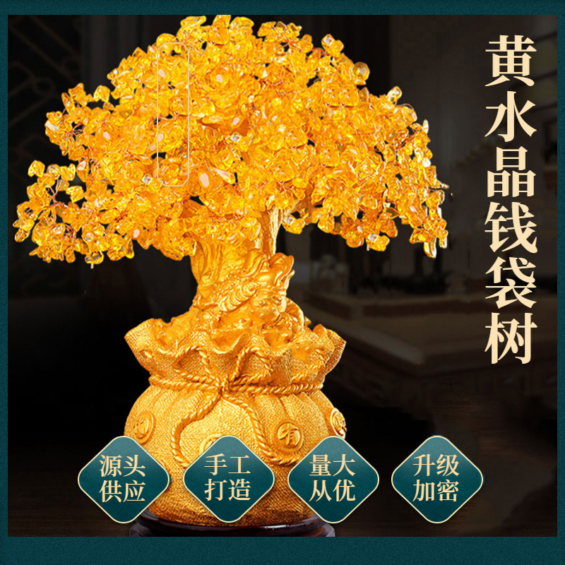 厂家直销批发天然水晶招财树钱袋树发财树摇钱树商务工艺礼品摆件