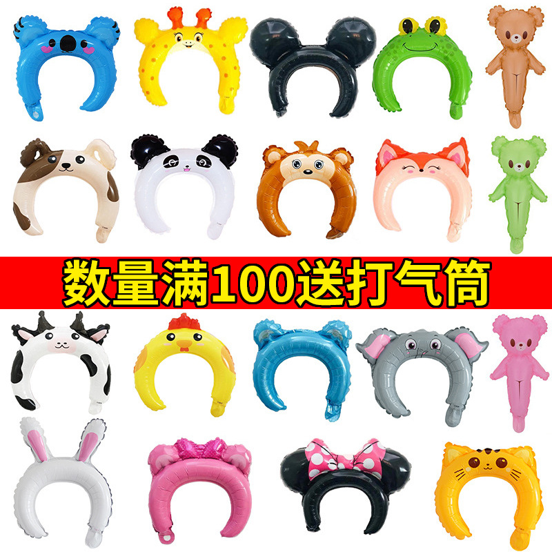 卡通头箍气球地推发卡发箍气球引流小礼物儿童头饰气球六一装饰