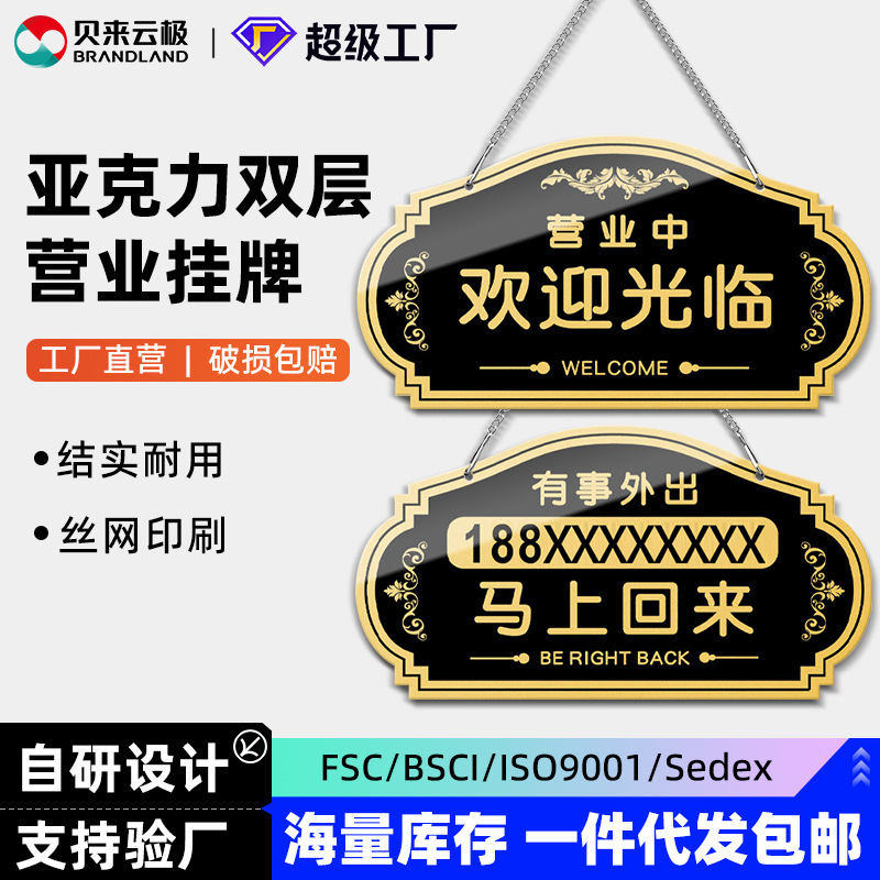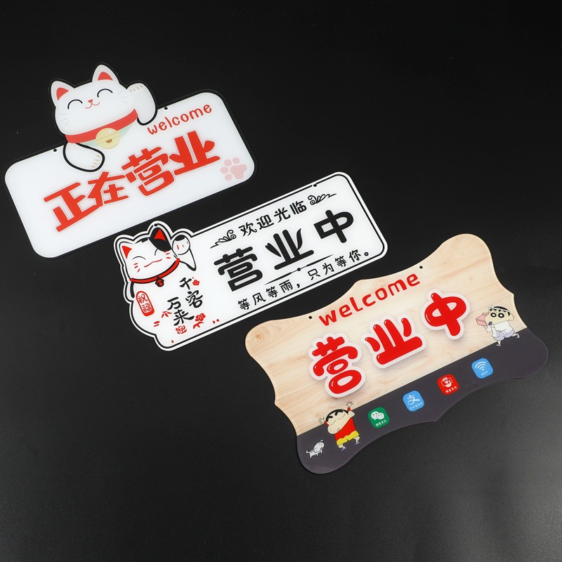 挂牌亚克力正在营业中空调开放手机号马上回来欢迎光临大双面门牌