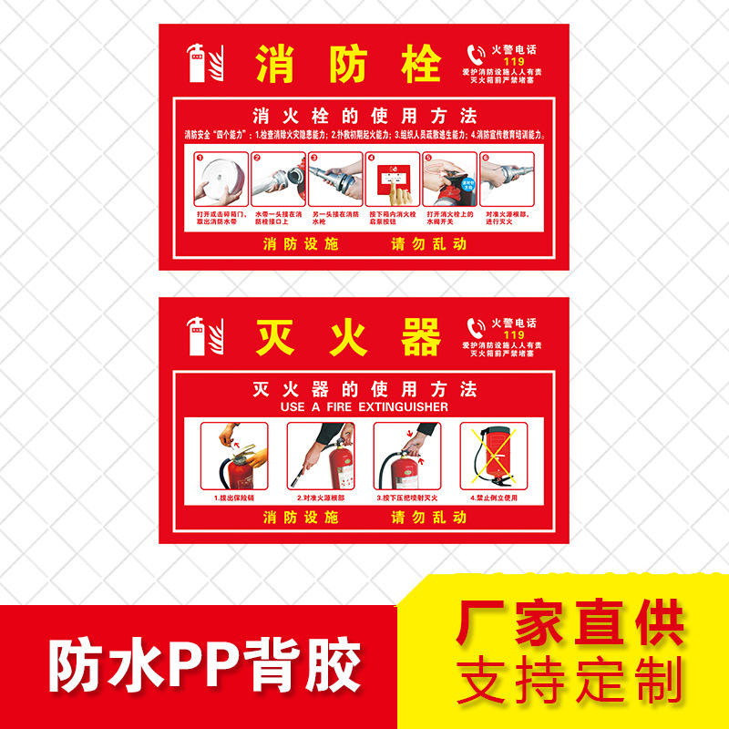 灭火器使用说明消火栓使用方法标识牌防水贴纸工厂安全操作指示牌