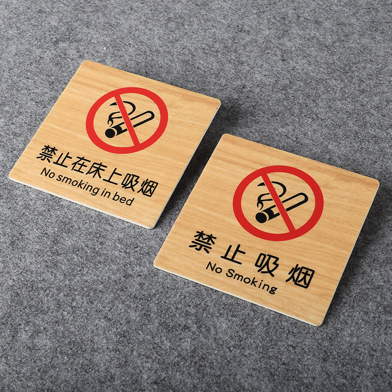 酒店标识牌禁止吸烟请勿在床上吸烟小心地滑当心碰头请勿打扰请即