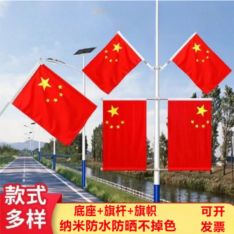 345号灯杆旗国庆红旗工字旗杆V字型门口墙壁斜插式灯杆旗厂家批发