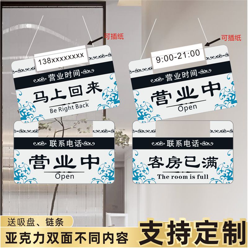 亚克力营业中挂牌 可插纸提示牌 马上回来双面欢迎光临客房已满