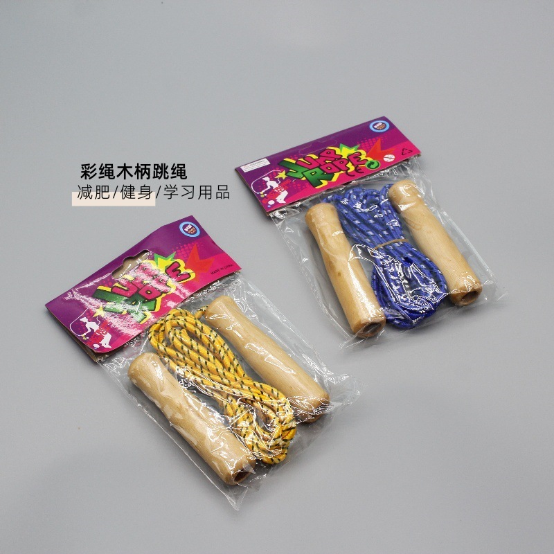 跳绳玩具儿童木质小学生体育幼儿园初学男孩女孩跳绳木质手柄棉绳