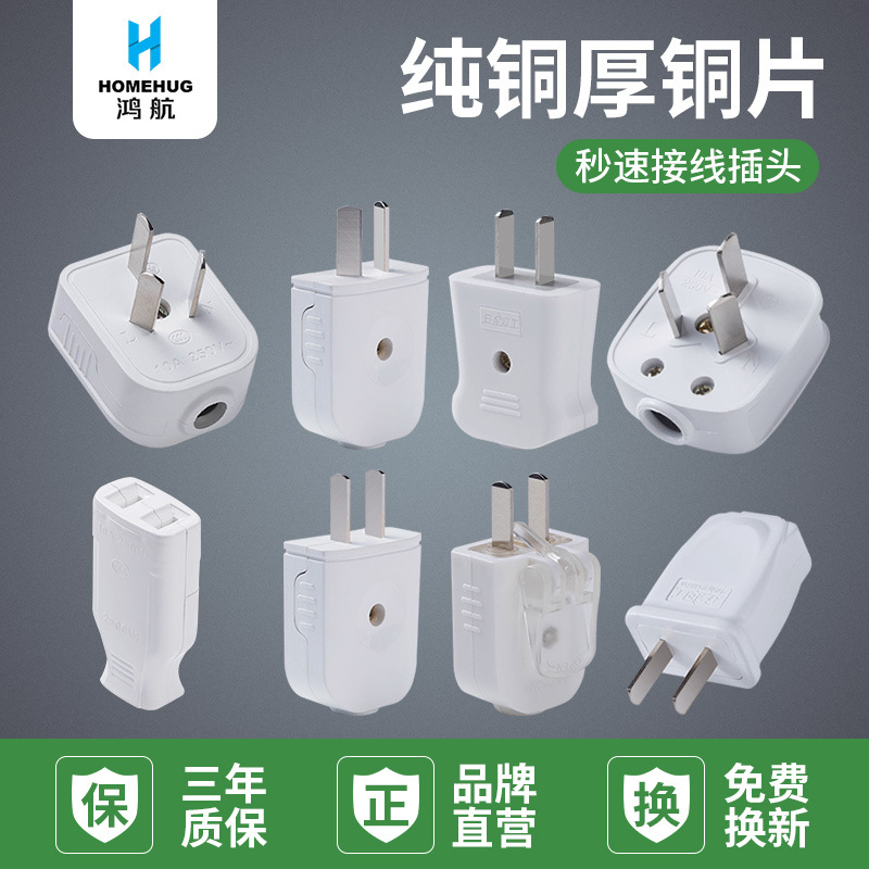 厂家批发大功率纯铜2脚二插头10A二脚插头 二极插头10a/16a三插头 接线插头电线插头电源插头
