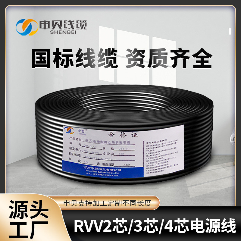 仁辉电缆 RVV2芯3芯4芯1.5 2.5 4 6平方黑色防冻防水线超软电源线电线
