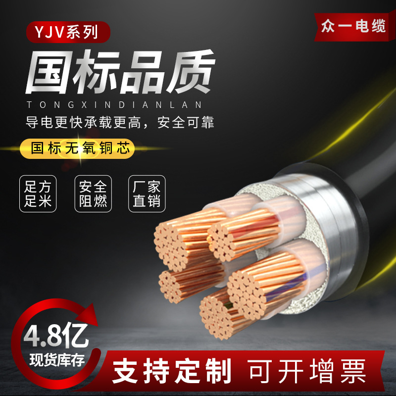 ZR-YJV铜芯电缆五芯无氧纯铜芯国标充电桩光伏阻燃电缆线电力电线