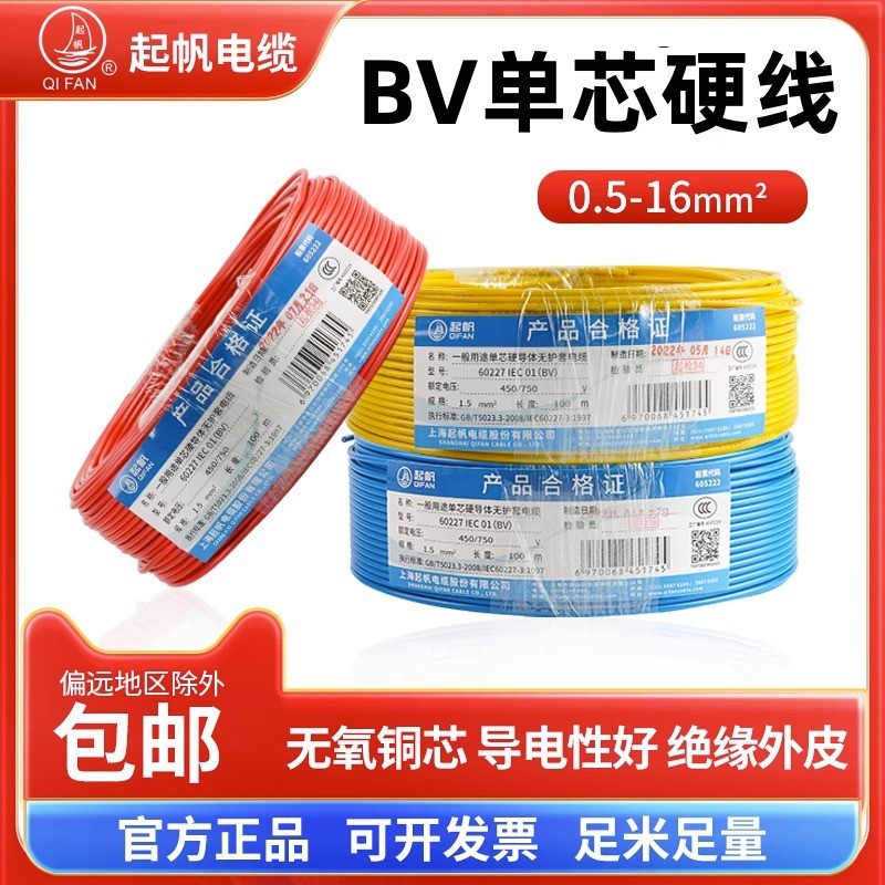 起帆电缆BV硬线厂家0.5/0.75/1/1.5平方国标电源线铜芯线家装电线