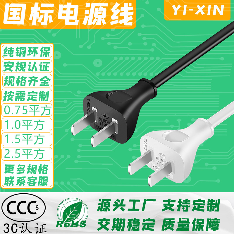 国标三插品字尾电源线H05VV-F 3*0.75平方1.0平方1.5平方电源线