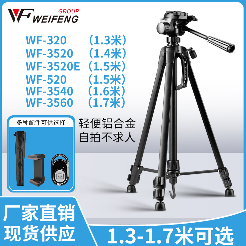 伟峰3520单反相机三脚架摄影摄像便携微单三角架手机支架自拍直播