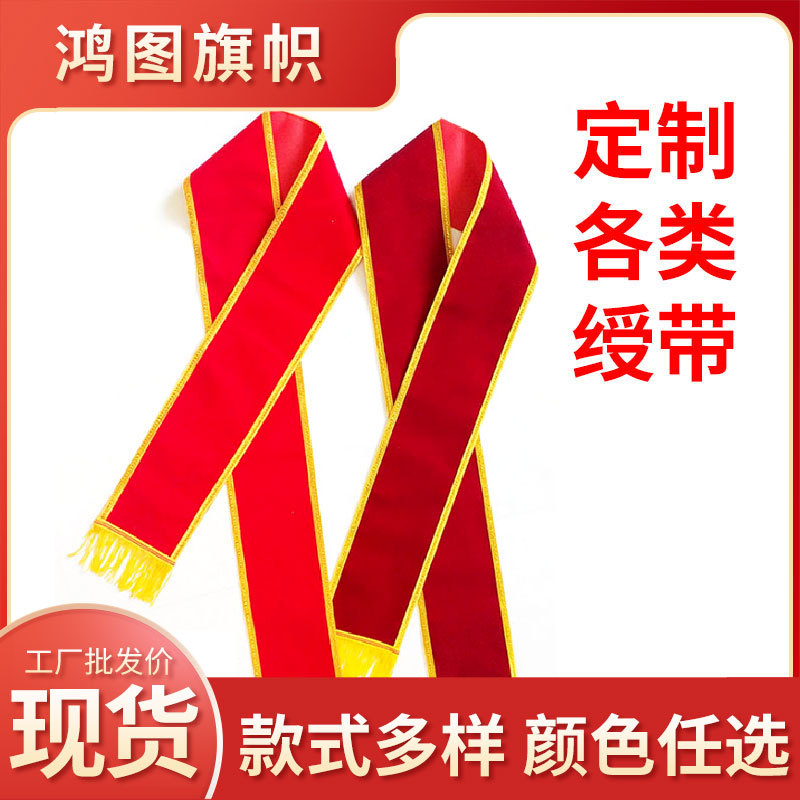 五彩贡缎植绒布料绶带红黄双层绸缎礼仪带迎宾带成人儿童植绒授带