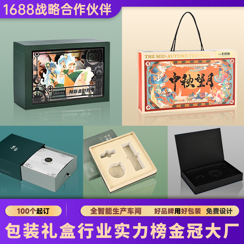 礼品盒精装盒定制中秋月饼盒定制书型翻盖抽屉盒天地盖包装盒定做