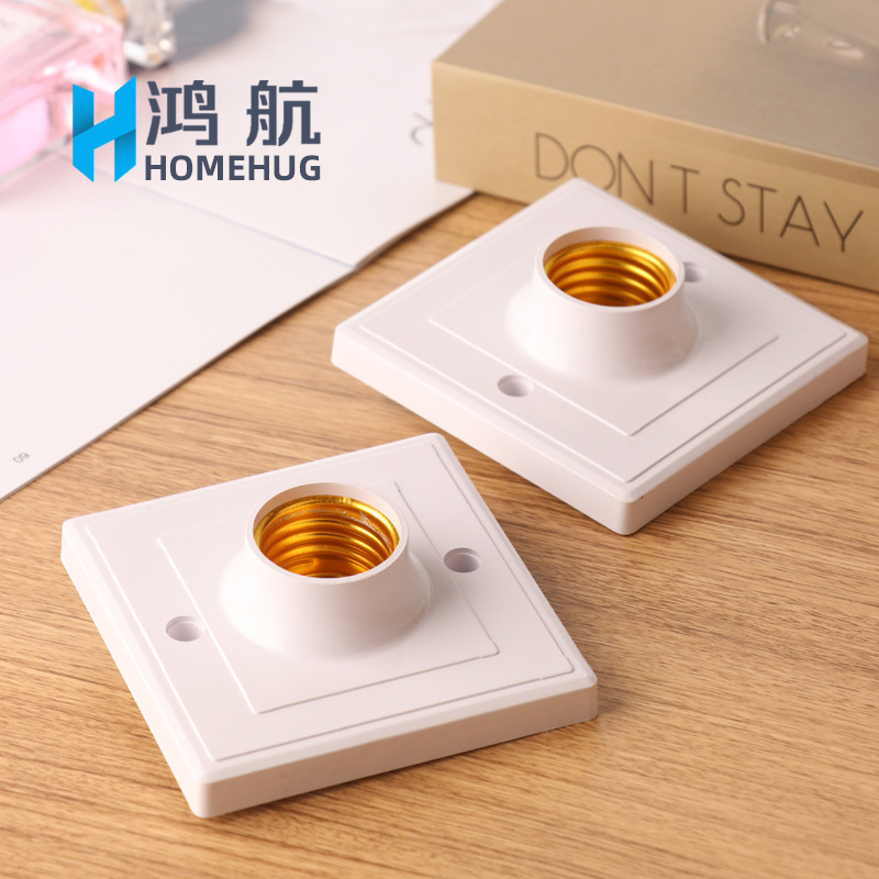 批发e27螺口陶瓷灯头座家用客厅明装86型平口灯座塑料平装式灯座